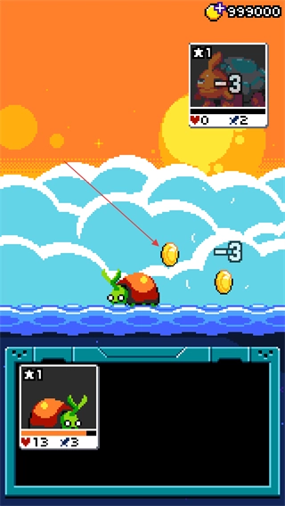 遭遇火焰龟等敌人,发起攻击,消耗其血量。