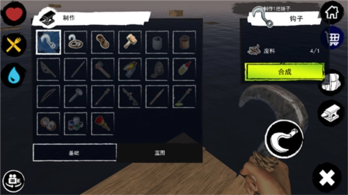 资源收集:借助钩子打捞海洋里漂浮的废弃物,为你的筏子保障稳定的物资供给。