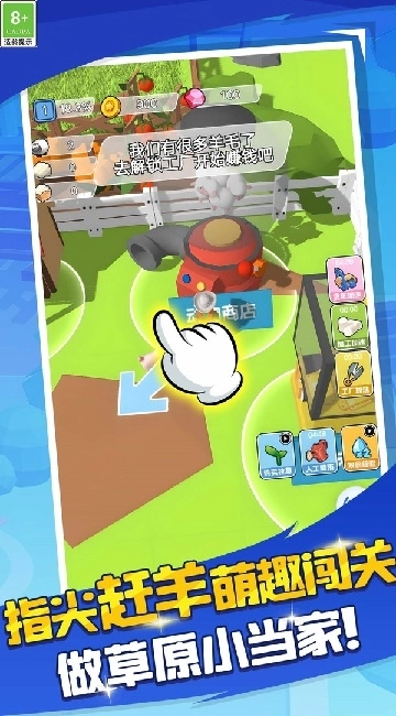 1、起步阶段靠作物与羊毛来换取金币,慢慢积累后购置更多绵羊。