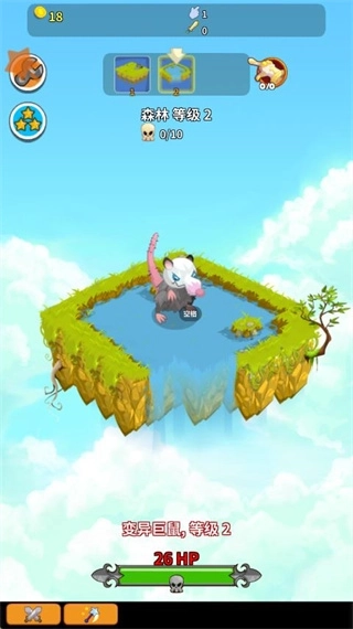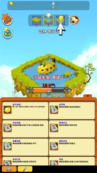 3、击败怪物后,我们会得到一些经验值,点击上方的按钮就能升级场景了。