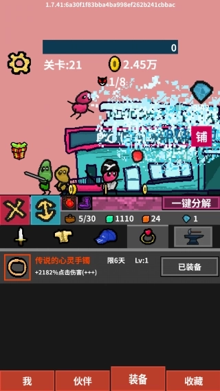 4、优先配备“传说的心灵手镯”这类能显著提高点击伤害的强力装备,并且借助“一键分解”功能来处理不需要的装备。