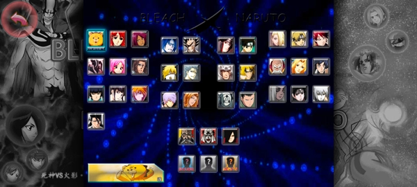 2、游戏内提供了死神和火影系列中的多名角色供玩家选择,玩家可以挑选自己的3名角色,同时系统(电脑)也会配置三名角色;
