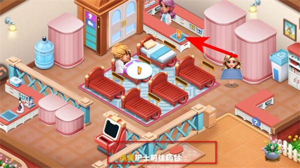 3、在妥善安置好患者之后,点击护士让其前往药台,领取对应的药品,以此完成治疗的相关流程。