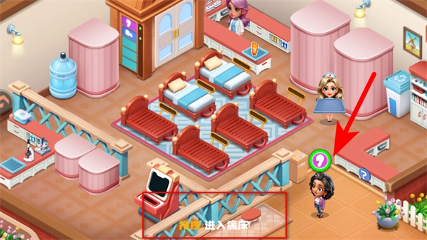 2、进入关卡后,依据提示拖拽对应的角色到病床处,完成患者的安置步骤。