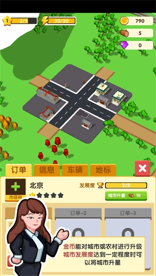 1、操作简便易上手,轻点即可完成砍树、修路、购车、订货等核心操作,清晰的任务指引帮助新手快速掌握建设与经营的关键要点。
