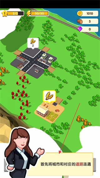 1、按照提示先把城市和村庄的道路连通,明确游戏刚开始的目标是连接城市与村庄的道路。