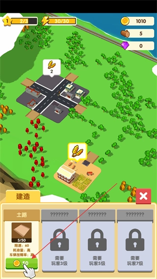 3、选择土路,解锁需消耗50金币,此道路要求玩家等级达到3级方可使用,解锁完成后即可着手铺设。