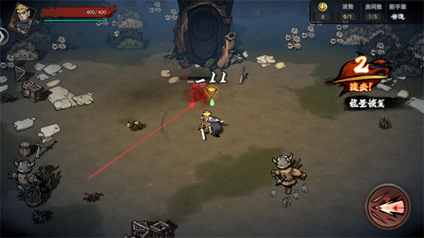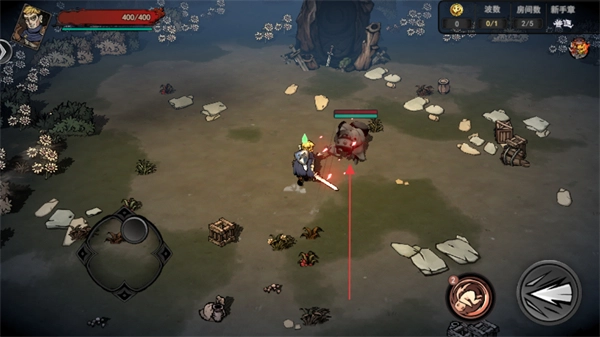 1、控制角色移动,接近场景里的敌人(像持剑怪、牛角怪这类)就能触发战斗。
