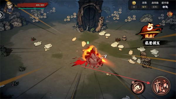 4、战胜敌人后拾取掉落的物品,接着探索场景、挑战更多敌人,以推进关卡进度。