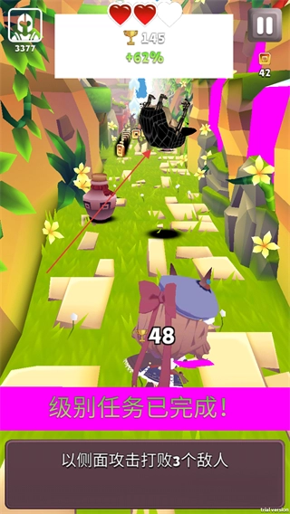 3、游戏过程中会出现敌人,按照底部的提示从侧面发起攻击,击败3个敌人后,完成任务并退出跑酷环节就能领取对应的奖励。