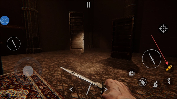 3、若场景光线欠佳,点击右侧的手电筒按钮即可开启光源,以此提升环境的可见度,方便清晰查看周边的可交互道具。