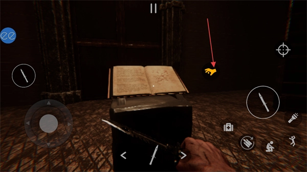 4、当靠近场景中的书本类道具时,点击右侧的拾取图标即可与该道具进行交互,从而获取书本所包含的信息,这是收集线索的关键操作之一。
