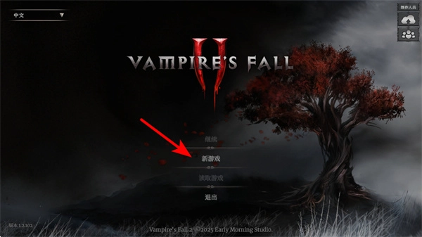 1、进入游戏主界面后,点击红色箭头指向的新游戏选项,即可开启VAMPIRE'S FALL II的冒险流程。