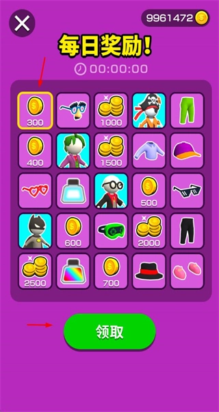 3、在每日奖励页面,点击领取按钮即可获得金币、道具等奖励,积累这些资源能够助力玩法提升。