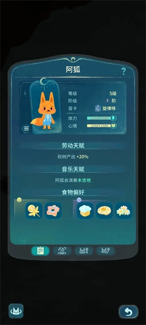 天赋:具备特定天赋的小咕咚,在开展对应活动的过程中,心情与体力的消耗将降低20%。
