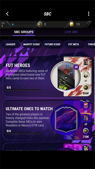 这是FIFA系列的另一经典玩法,玩家可利用多余球员搭配出满足条件的阵容,以此兑换新球员,其中还包含最新的本地挑战任务(LIVESBC)。