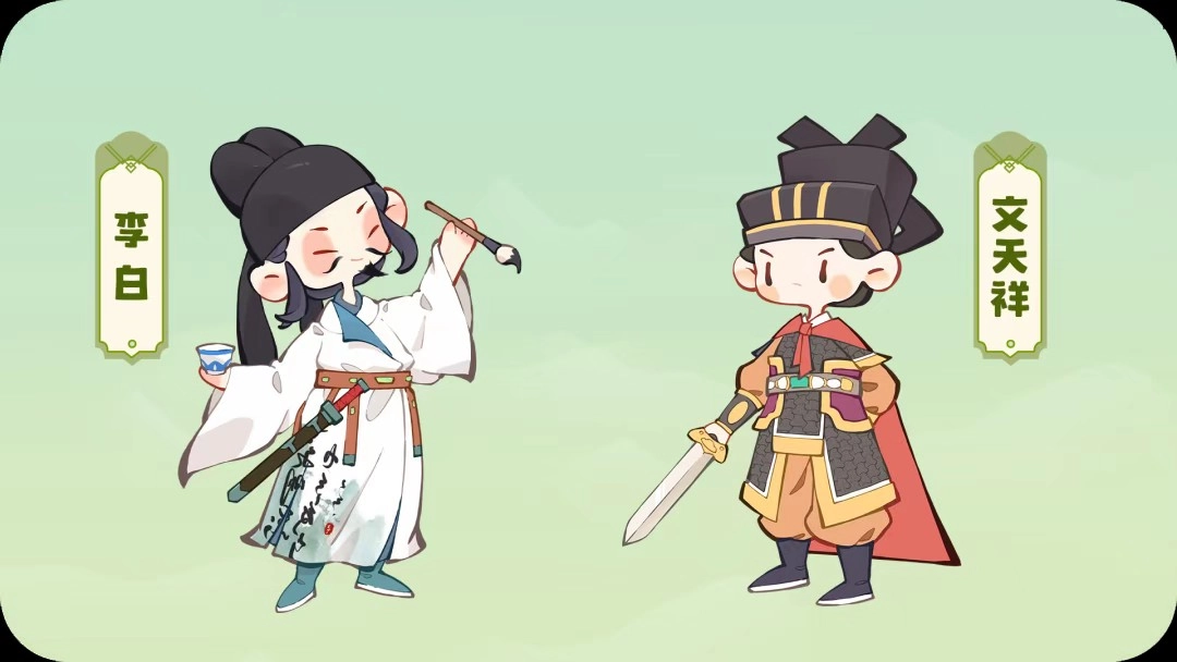 名士推荐:李白+文天祥 或 李白+柳永
