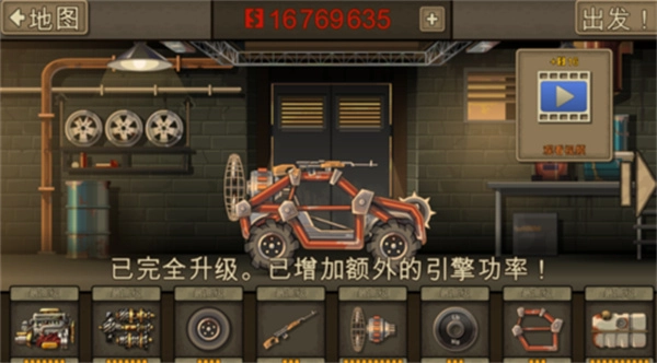 2、持续挑战并通过更多关卡,就能获取丰厚的金币奖励,用这些金币去购置更强大的武器和道具,为你的车辆进行改装升级吧;