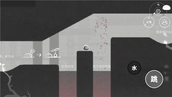 游戏内有很多障碍阻拦,如红水等,清澈的水则可以进入补充生命值;