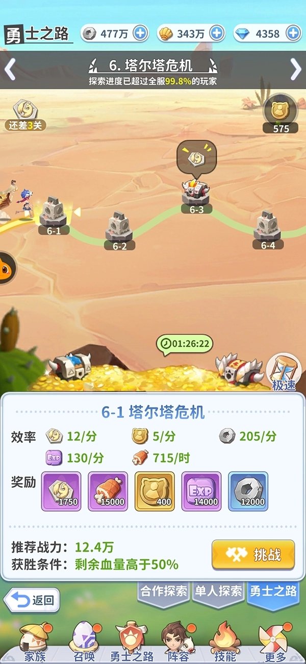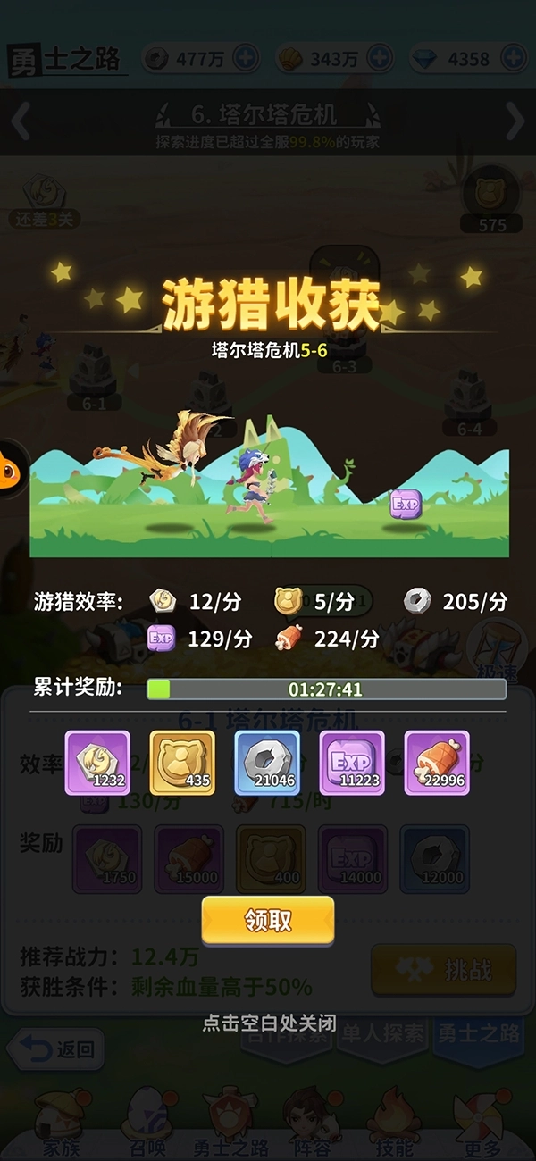 在勇者之路上,挂机能够让你收获丰厚奖励,而且通关的关卡数量越多,奖励的获取效率就会越高哦~