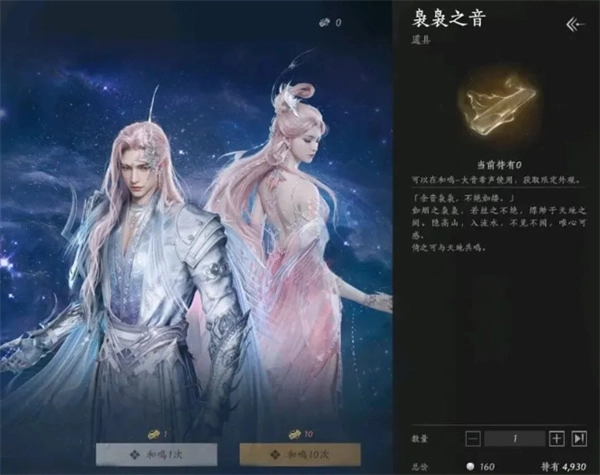 1、接下来要讲的是非绑定的袅袅,通过非绑定袅袅抽到的八音窍可以在销金窟挂售交易,这点大部分玩家应该都清楚,每次抽取需要消耗160颗长鸣珠。