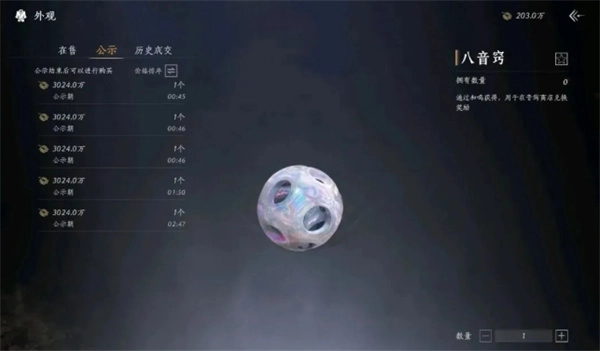 3、销金窟内的八音窍价格大概在3024万宝钱,其市场价格约为1300。需要留意的是,若要将非绑定的八音窍进行线下交易,需累计充值达到4000,才能通过赠送的方式完成交易,不然无法成功送出。