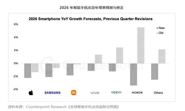 另一方面,市场增长动力悄然生变。高盛等机构已因此下调全球出货预期,认为成本上涨将抑制换机需求。IDC预测,2026年中国市场出货量可能出现2.2%的小幅下滑。