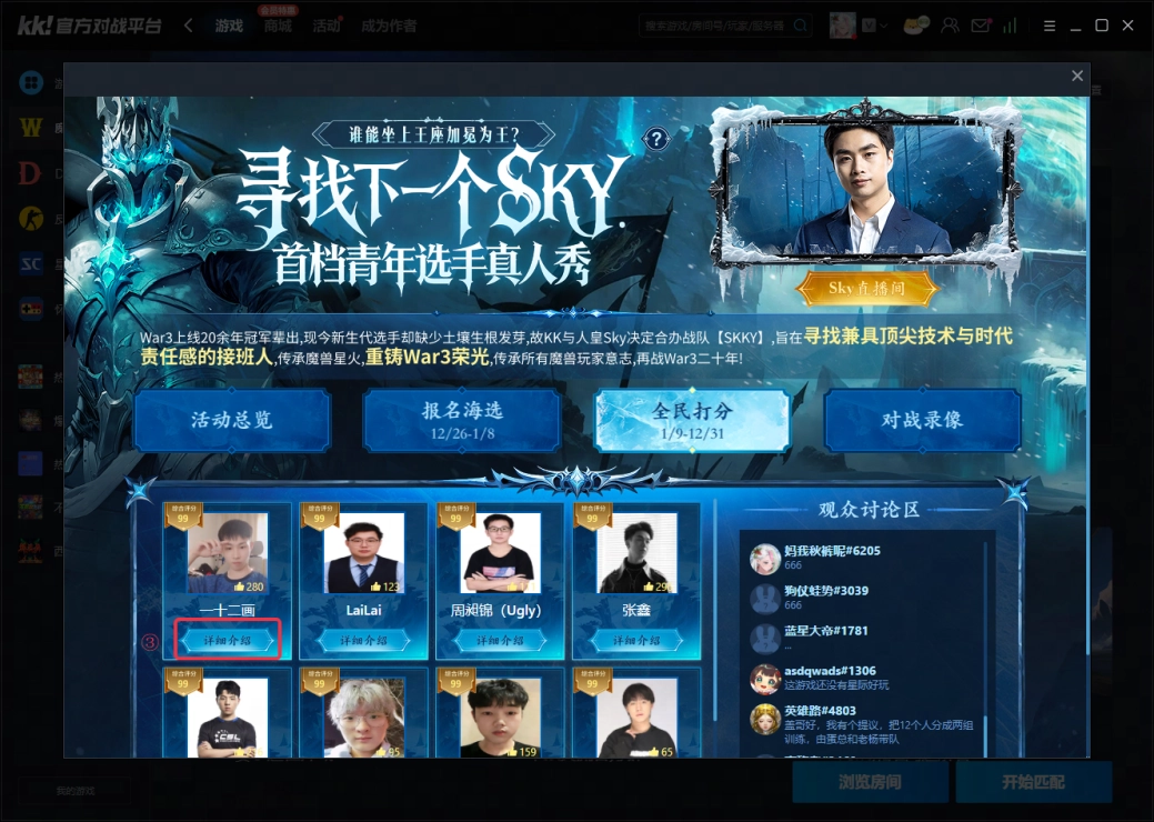 打开平台选择魔兽经典对战《寻找下一个sky活动》