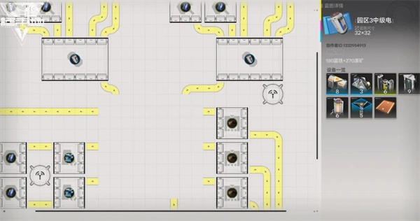 2、源石研究园区三核中级电池生产线:可直接在园区核心投入使用,需先完成区域及存储线的升级。蓝图分享码为:EF013Eou270i6aO0579。