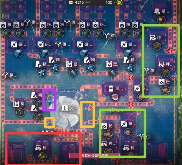 2、谷地通道:需完成全部升级,紫晶瓶用于转运物资。紫色区域的出料口对应紫晶矿,黄色区域所有出料口均为砂叶粉。蓝图分享码:EF018OI3EeaA912aUI73。