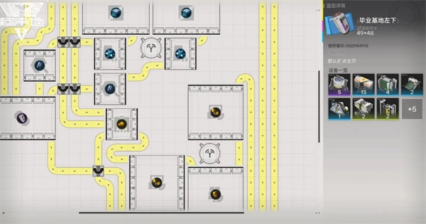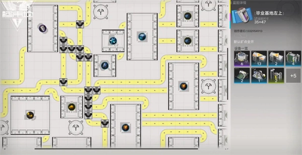 1、谷地通道阶段没有任何扩建方面的要求,该阶段主要用于兑换调度券,此规则适用于谷地通道所在的次级核心区。当紫晶矿的采集速度达到120/min时,就能让双胶囊12/min的产线达到满负荷运转状态;如果紫晶矿供应不足,不妨考虑暂时关闭枢纽区的基地产线。采种机需要手动填充荞花才能启动,过程中会产生大量的荞花粉末溢出,大家可以自行从粉碎机里取走几组使用。蓝图分享码:EF01o5u8Oi1U06EIieO