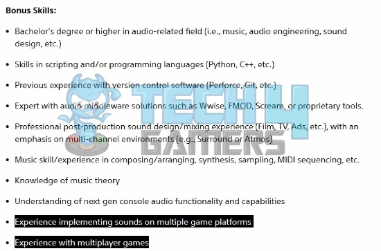招聘信息中明确指出,期望应聘者拥有多人游戏开发的相关经验,同时具备在多个游戏平台上完成音效实现的经验,这一表述明显暗示该项目很可能是一款面向多平台的多人游戏。