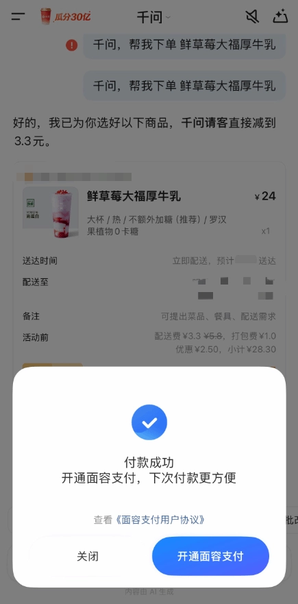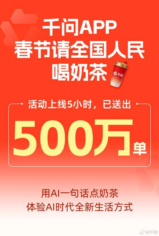千问在2月6日开启“30亿大免单”活动,带来“1分钱喝奶茶”的福利(即25元免单卡),用户邀请好友还能额外获得免单卡。