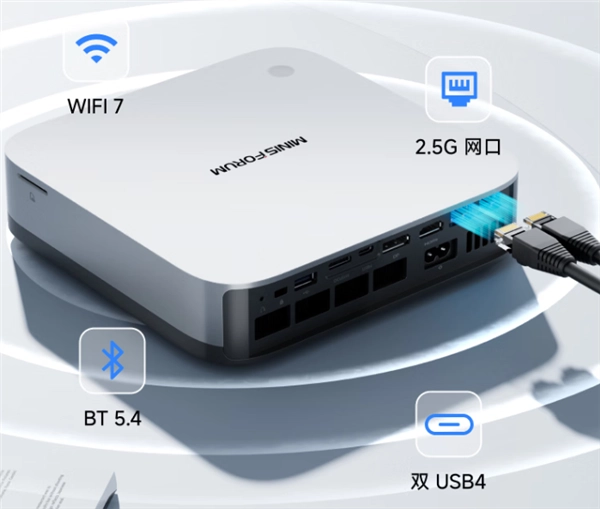 此外,它还兼容最新的Wi-Fi 7与蓝牙5.4无线技术。凭借强劲的多屏输出性能,该设备可同时连接多达四台4K显示器,轻松应对多任务处理与高清内容展示的使用场景。