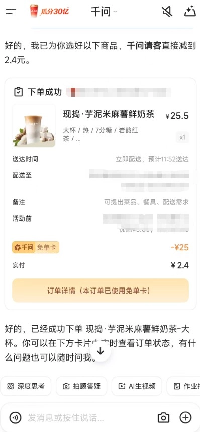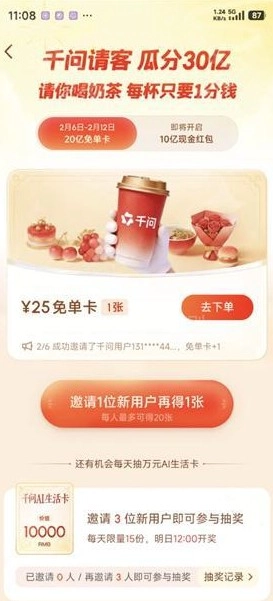 千问APP怎么领免费奶茶【详细教程】