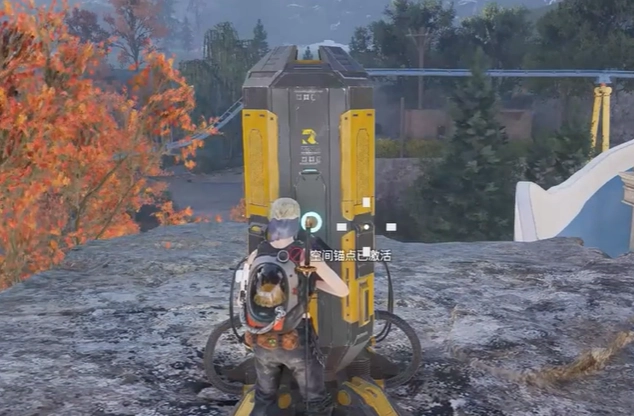 跳车之后,我们接着朝着小地图六点方向的空间锚点行进。激活该空间锚点后,我们便能飞到附近一块石头的边缘,下方就是一处观景点,记得把风景拍下来。随后,我们走进旁边的建筑,顺着路线前行,翻过饮料机,这时你会看见一个充电邮筒,它旁边有一个电池。先向右转,进入饮料机房,爬上石柱,就能看到第一个电池,拿到电池后,按原路返回,接着前往对面的房间。