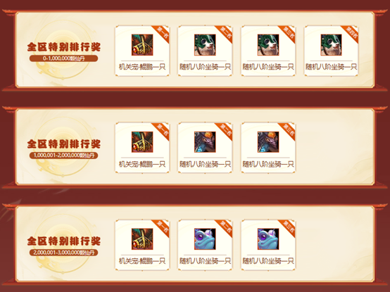 全区特别排行奖各第一名奖励全部为机关宠·鲲鹏一只!