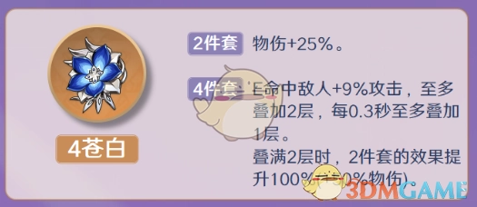 推荐理由:4苍白相较于4角斗,能多提供15%的物理伤害,不过它存在启动条件,需要元素战技(E)命中敌人两次,通过EQE的操作方式可瞬间达成启动。整体而言,这个启动难度不算高,对于那些追求伤害的小伙伴,可以考虑选择。