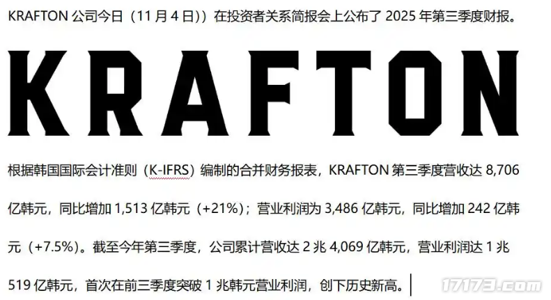 不只是热度有所回升,在Krafton公司刚发布的第三季度财报里还提到:“由于《PUBG: BATTLEGROUNDS》的热度持续保持,PC平台该季度营收同比上涨29%,刷新了历史纪录。”这表明,《PUBG》当下不仅日活跃用户数稳定在较高水平,营收表现也十分亮眼,各方面数据都在朝着好的方向迈进。