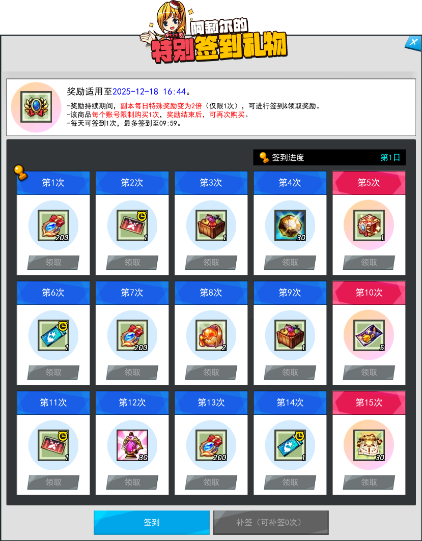 “阿莉尔的特别签到礼物”已同步推出,使用该道具不仅能获取隐藏副本徽记,提升副本通关经验值与超适应力,还可解锁签到活动,众多药水、时空卷轴等丰厚奖励等你来拿,是不容错过的实用道具!