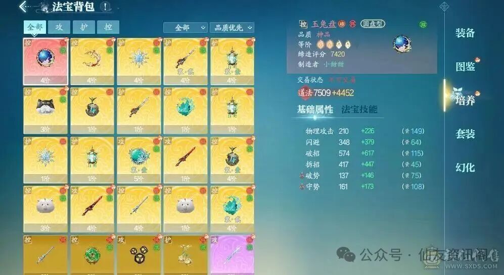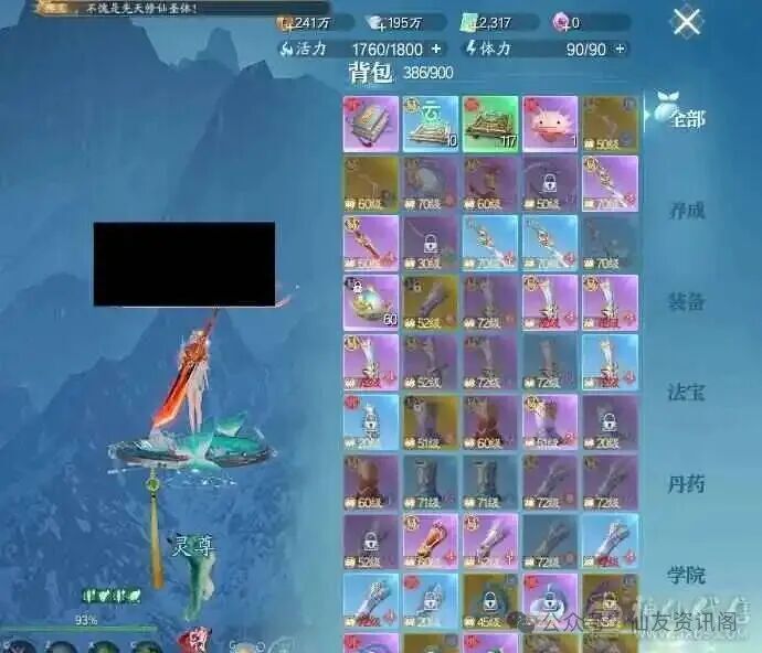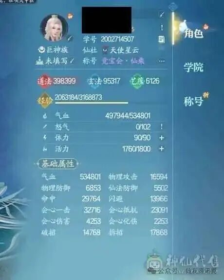 资源与养成方面:目前拥有196万两银子、1只黄鸟,同时涵盖神品法宝、阵灵收集、灵念镶嵌等养成玩法,破势、御攻等各项属性均已定型。