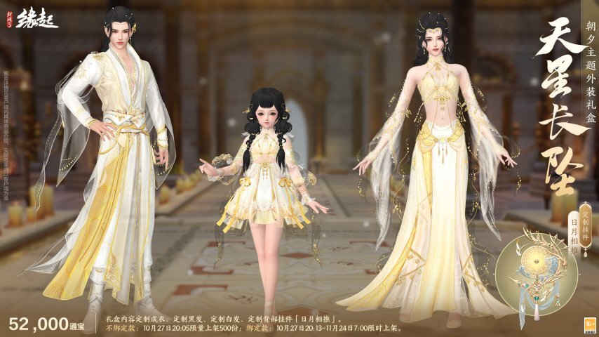 豪华版礼盒内含成衣+定制黑发+定制白发,售价38,000通宝,不绑定款10月27日20:09限量上架500份。