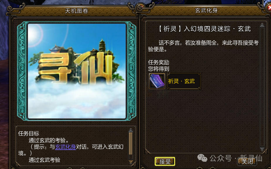 前往五宁宫,对正阳真人使用仙派召集令接取任务山中玄武晶莹雪,找到玄武化身坐标(2503,2137)入幻境完成挑战。