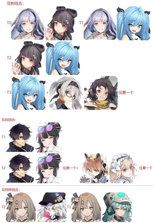 剩余三个可依据你队伍的配置,从双射 + 治疗、双战 + 治疗、双异种 + 治疗这几种组合中进行选择。
