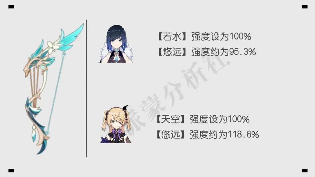无论是强度、泛用性还是武器外观,【悠远】的表现都十分亮眼,堪称高强度与高泛用性兼备的神器,除了主打蓄力攻击或重击的弓箭角色外,绝大多数角色都能适配使用。