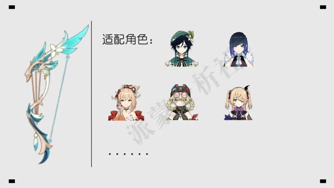 除了那些主要靠重击打输出的弓箭角色外,这把武器差不多就是万能适配的神器了!