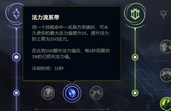 第二列选择【法力流系带】是因为莫甘娜前期是很缺蓝的,而且很需要回蓝。
