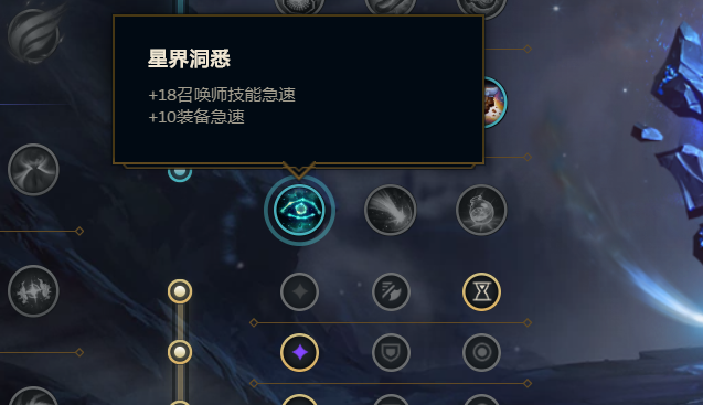 【星界洞悉】可以提供18点技能急速与10点装备急速的加成,对于莫甘娜这类依赖【中娅沙漏】和技能冷却缩减来输出伤害的辅助英雄而言,是相当实用的符文选择。