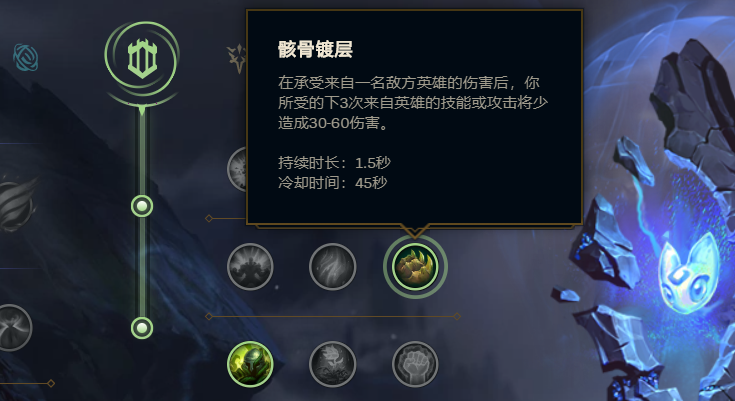 因此我们选择的是【骸骨镀层】和【过度生长】来保持莫甘娜的生存能力。