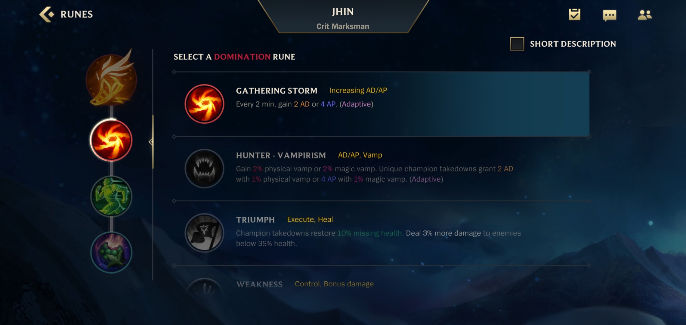 小伙伴们也可以选择风暴聚集这个符文,它的成长性攻击力相当不错——要是对局能打到20分钟,相当于免费拿到两把铁剑,这可是足足1000金币的收益呢!不过选了风暴聚集的话,前期就别太激进,毕竟它在前期的效果确实不如残暴来得直接。